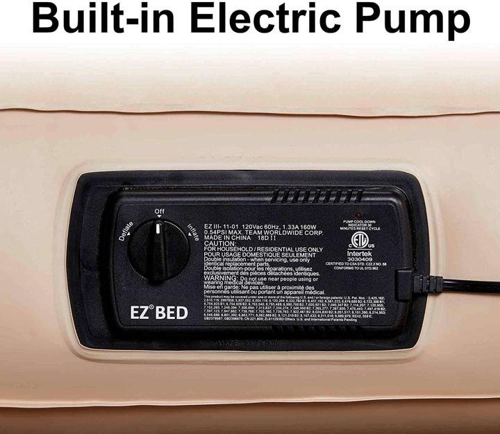- SELF-INFLATING AIR MATTRESS: A high-powered, built-in pump quickly and effectively inflates and deflates the air mattress with little effort from you. It automatically inflates in under 3 minutes.