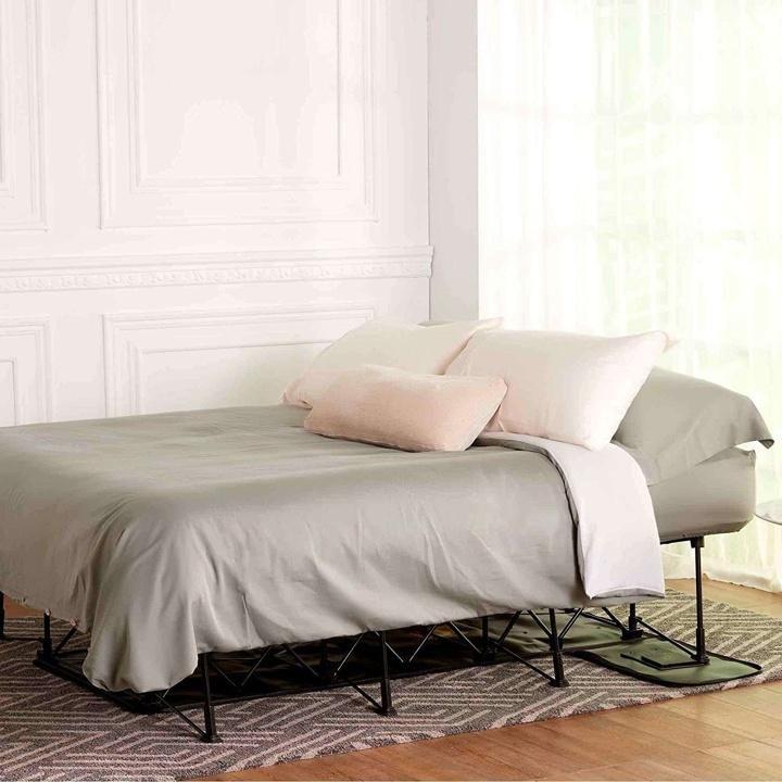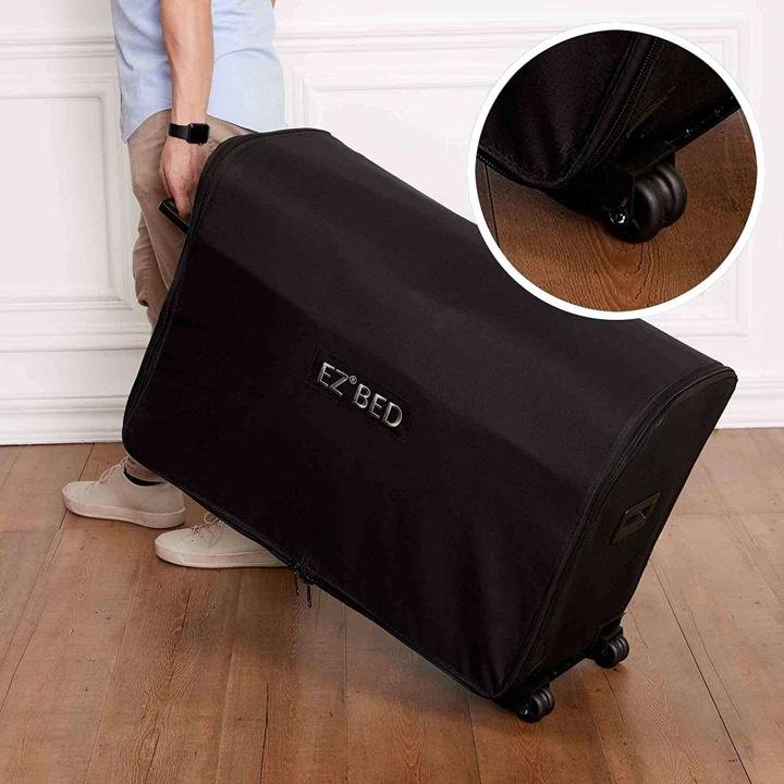 - EASY SETUP: Simply unzip the air mattress with bed frame from the compact, sturdy and durable wheeled storage case, roll it out, plug it in and then walk way.
