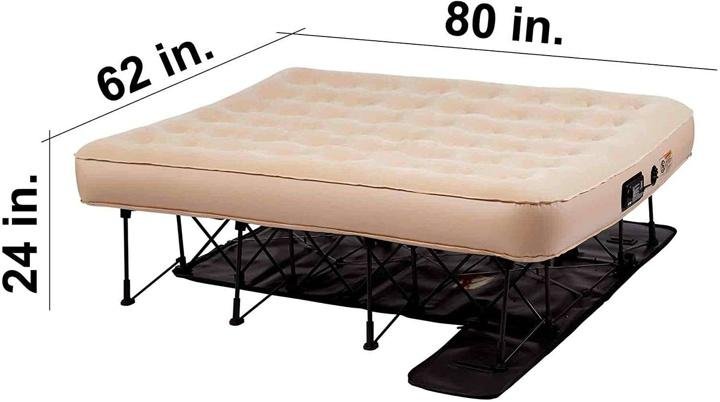 - SLEEP COMFORTABLY: The mattress on this raised air bed has a velvety flocked top sleeping surface to keep bedding in place. Plus, the comfort coil construction provides unmatched stability. Made of strong and durable PVC, this self-inflating mattress can hold up to 500lbs. Plus, this mattress inflates to a standard 24-inches in height, making it easy to lay down and get up.